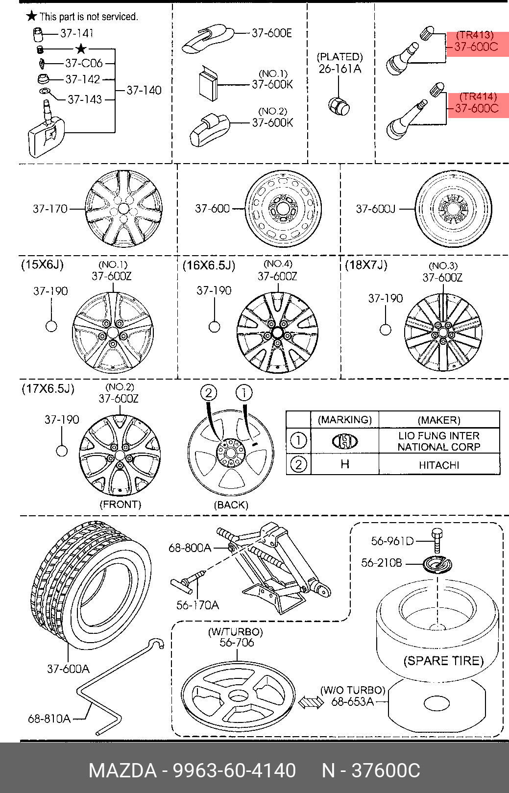 9963-60-4140 MAZDA КЛАПАН КОЛЕСА 9963604140