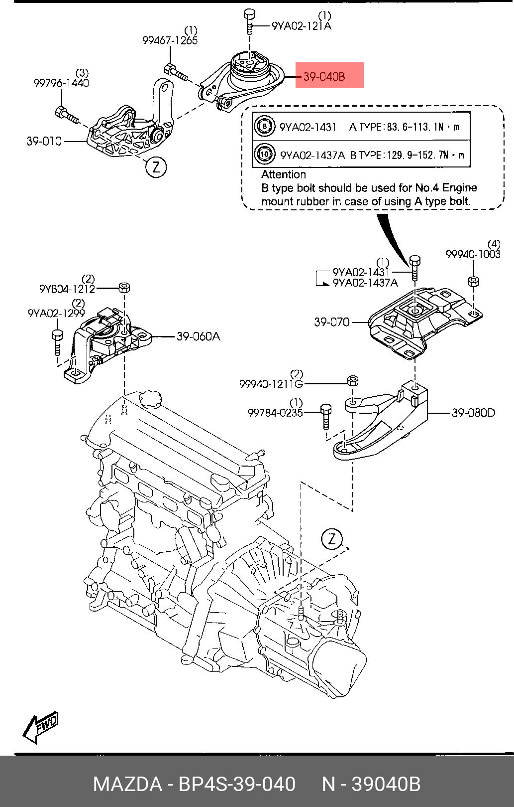 BP4S-39-040 MAZDA ОПОРА ДВИГАТЕЛЯ