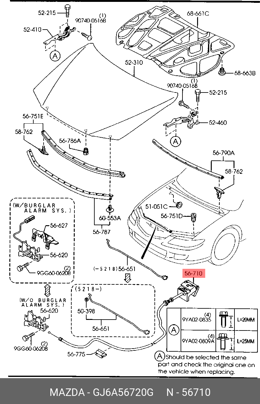 GJ6A-56-720G MAZDA Трос капота MAZDA 6 (02-) ОЕ