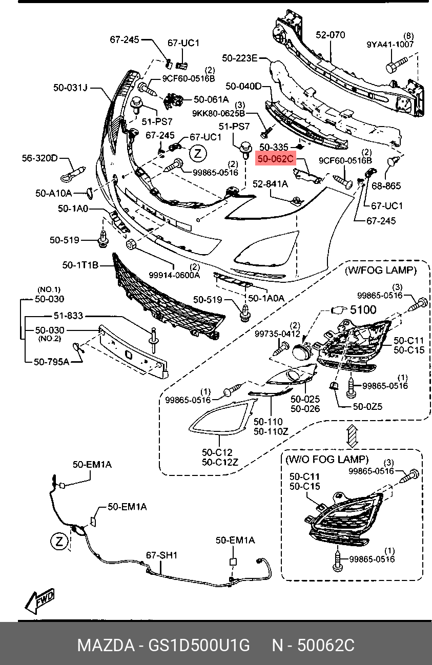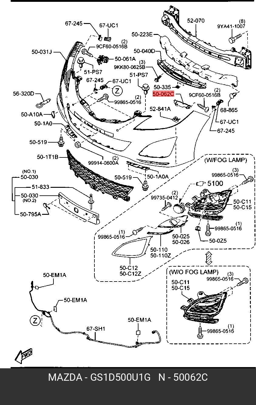 GS1D500U1G MAZDA Кронштейн бампера MAZDA 6 (07-) переднего левый OE