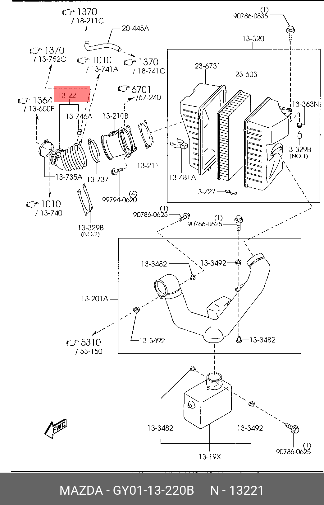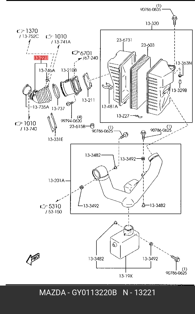 GY0113220B MAZDA Патрубок MAZDA MPV (99-) фильтра воздушного OE
