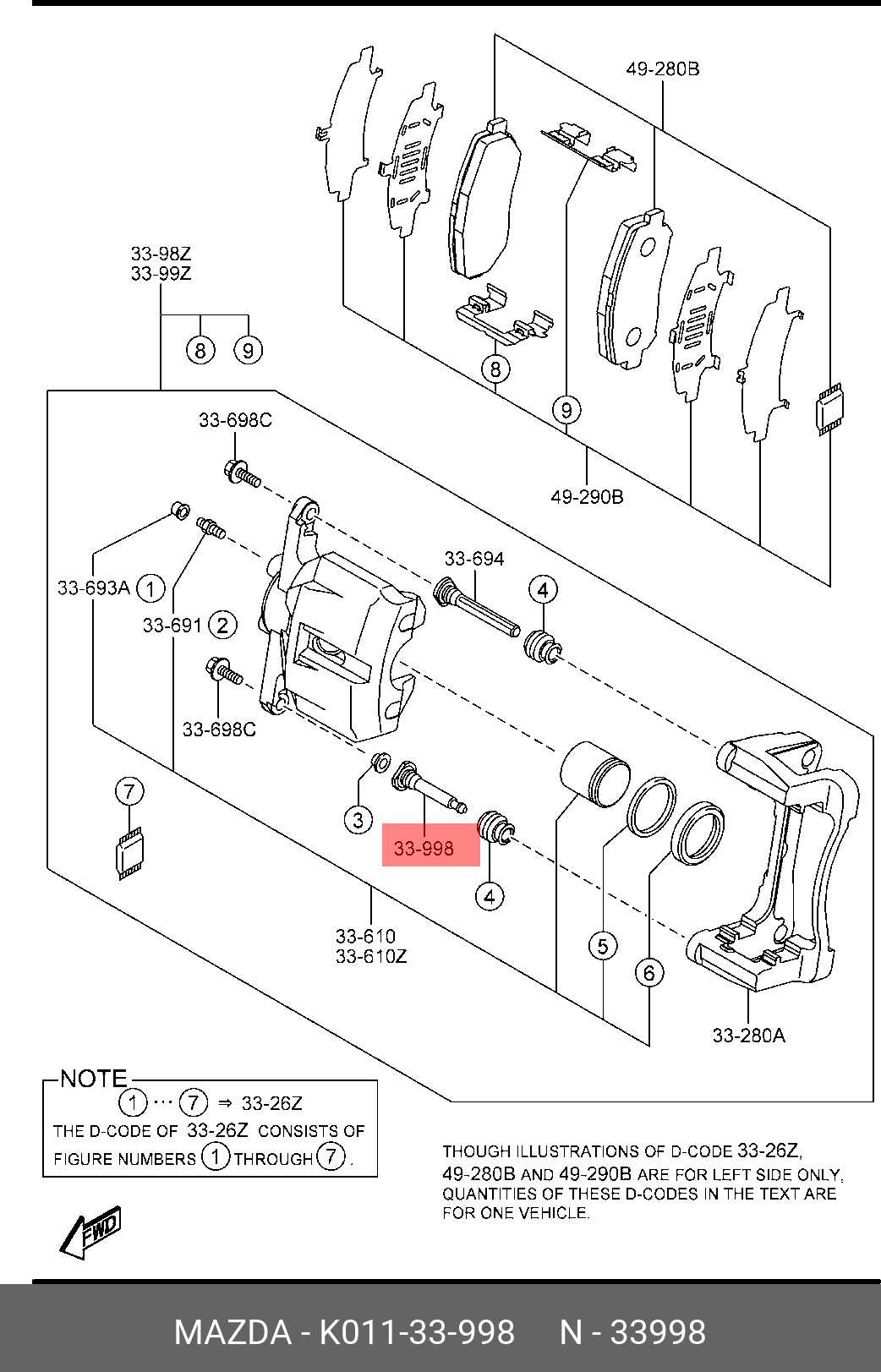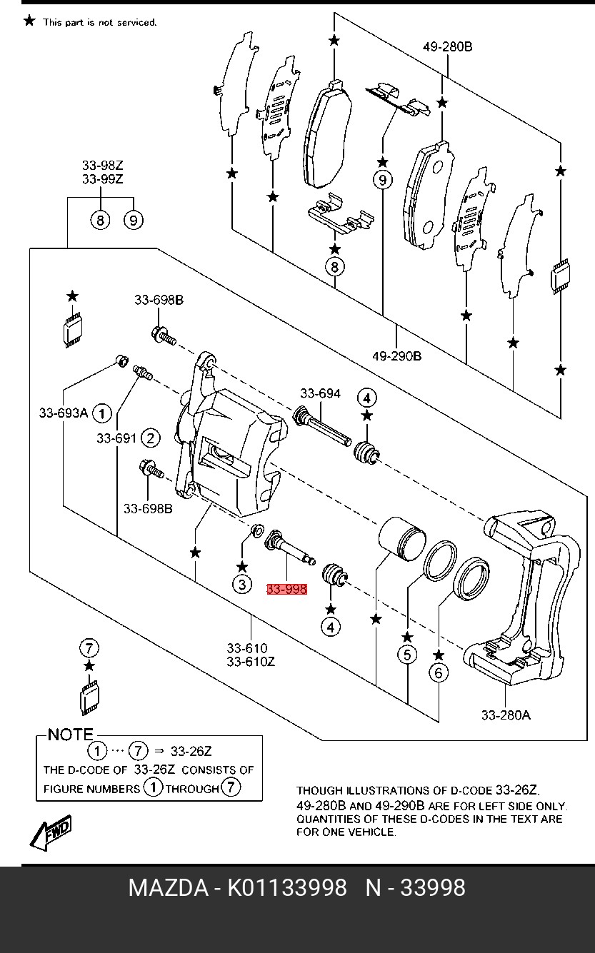 K01133998 MAZDA Втулка MAZDA CX-5 (11-) NISSAN Qashqai (06-),X-Trail (07-) направляющая суппорта