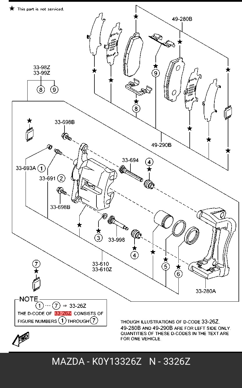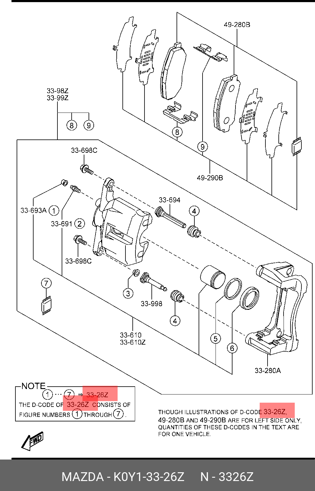K0Y1-33-26Z MAZDA Ремкомплект суппорта переднего MAZDA K0Y1-33-26Z
