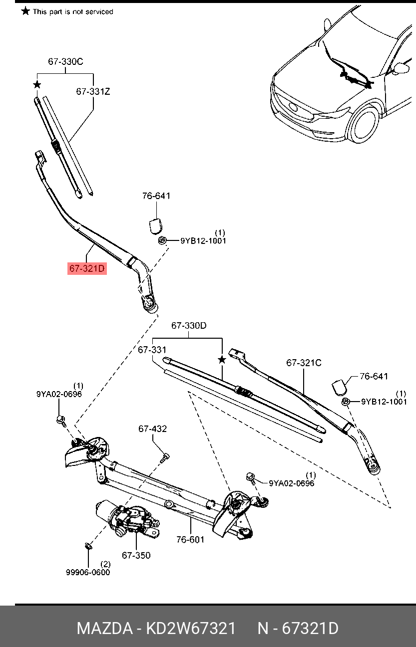 KD2W67321 MAZDA Поводок стеклоочистителя передний правый KD2W67321