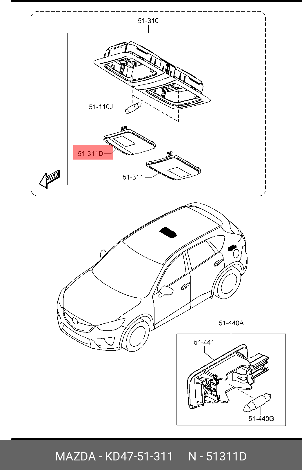 KD47-51-311 MAZDA Стекло MAZDA CX-5 (12-) плафона освещения салона левое OE