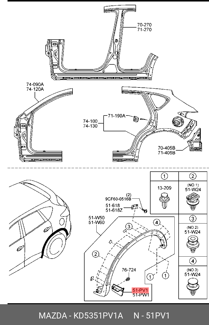 KD5351PV1A MAZDA НАКЛАДКА ЗАДН. ПРАВ. РАСШИРИТЕЛЯ