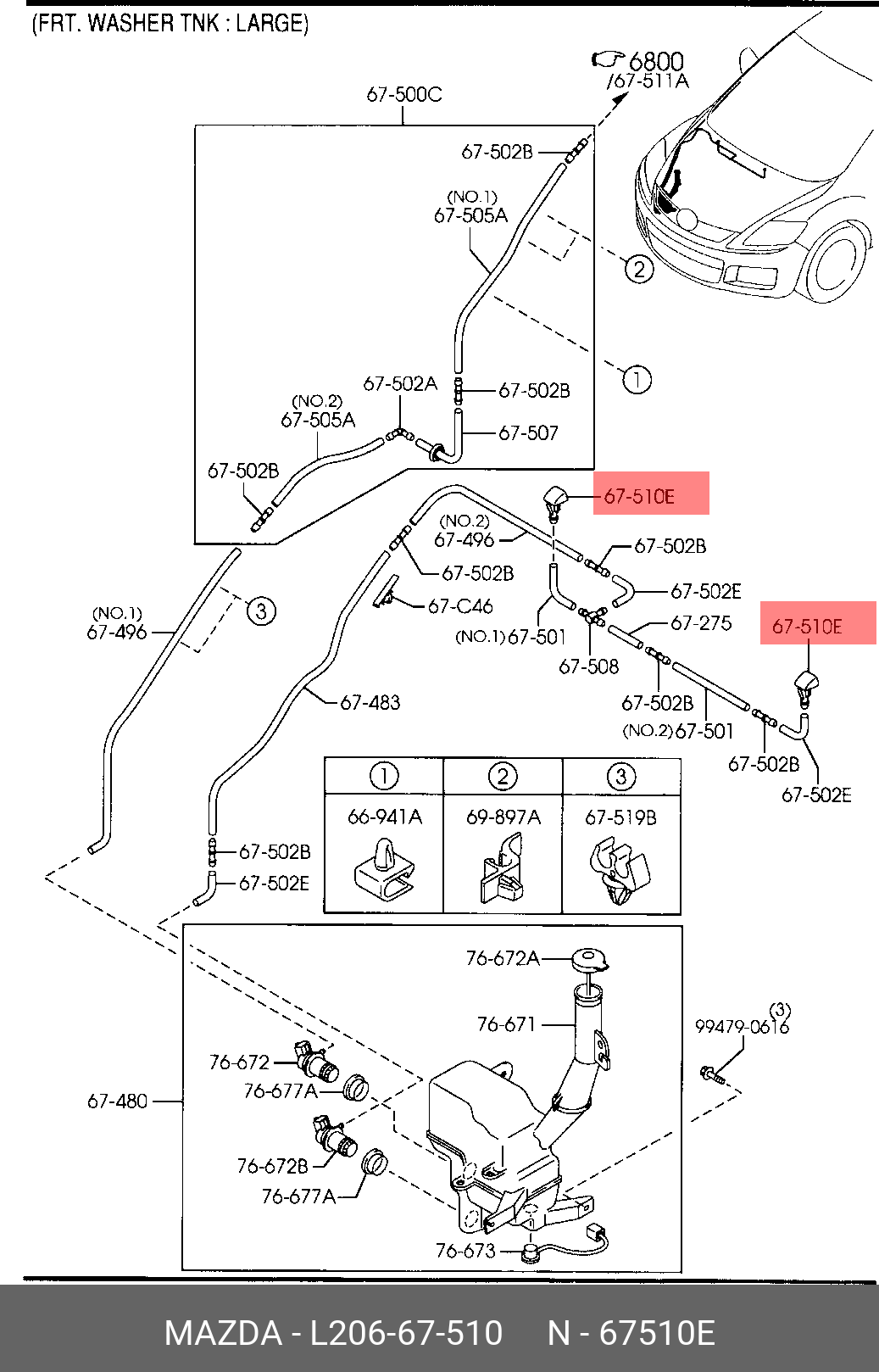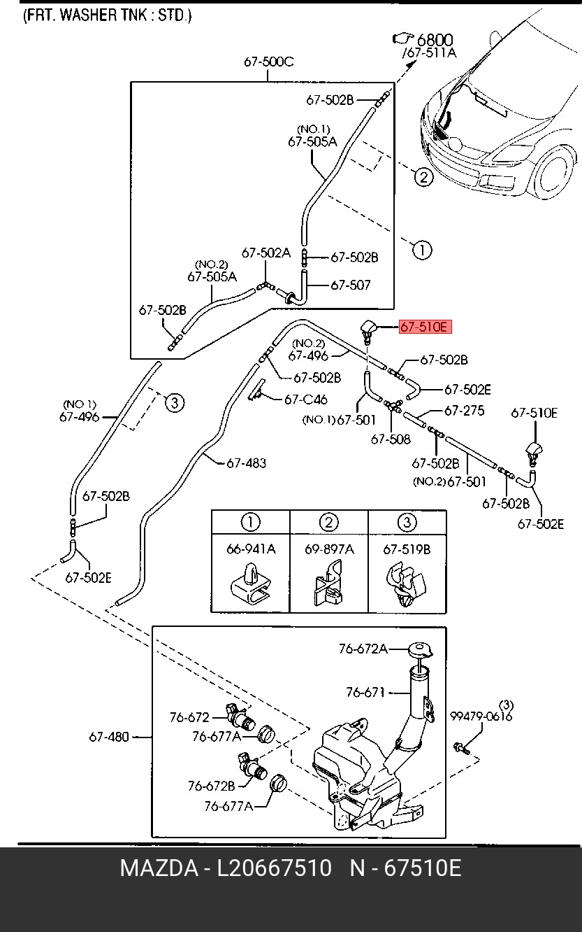 L206-67-510 MAZDA ФОРСУНКА ОМЫВАТЕЛЯ ВЕТРОВОГО СТЕКЛА L20667510