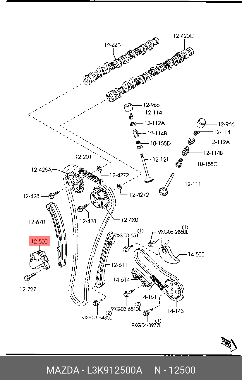 L3K9-12-500A MAZDA Натяжитель цепи ГРМ MAZDA 3 (08-),5 (10-),6,CX-7 (09-) OE