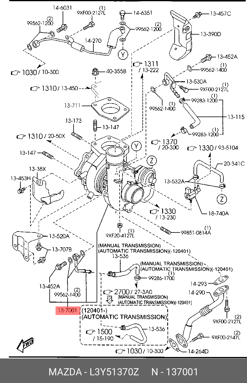 L3Y51370Z MAZDA L3Y51370Z Восстановлен в заводских условиях, Турбокомпрессор Mazda CX-7 MZR DISI