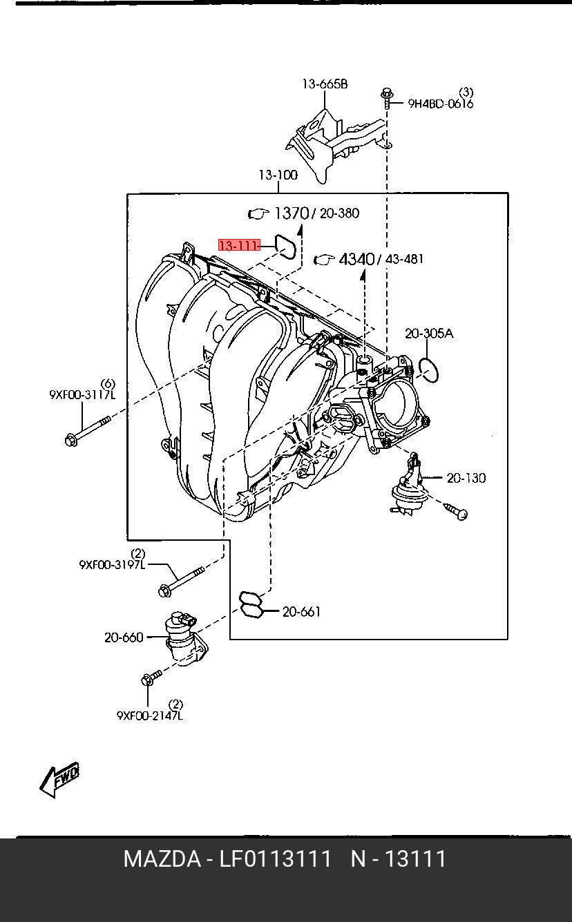 LF01-13-111 MAZDA Прокладка коллектора MAZDA 3 (03-) впускного OE