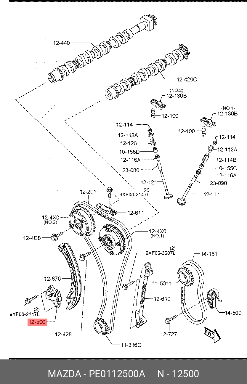 PE0112500A MAZDA Натяжитель цепи ГРМ MAZDA 6 (GJ) OE