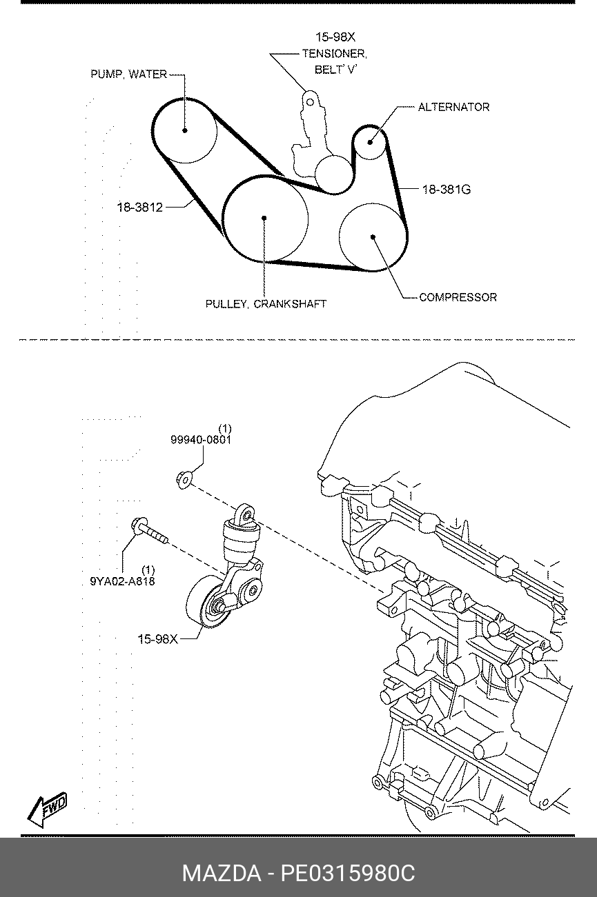 PE0315980C MAZDA Ролик с натяжителем MAZDA PE0315980C