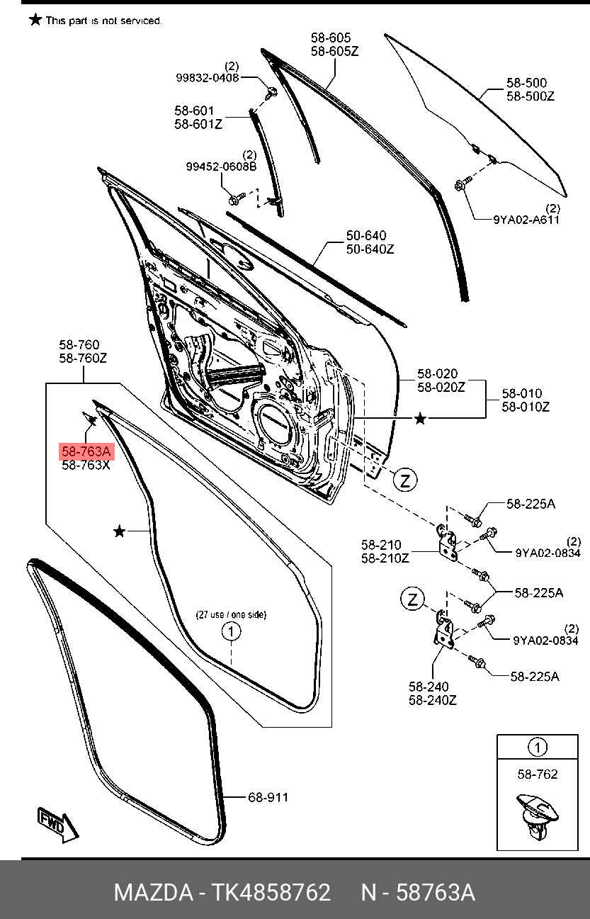 TK4858762 MAZDA ПИСТОН КРЕПЁЖНЫЙ TK4858762