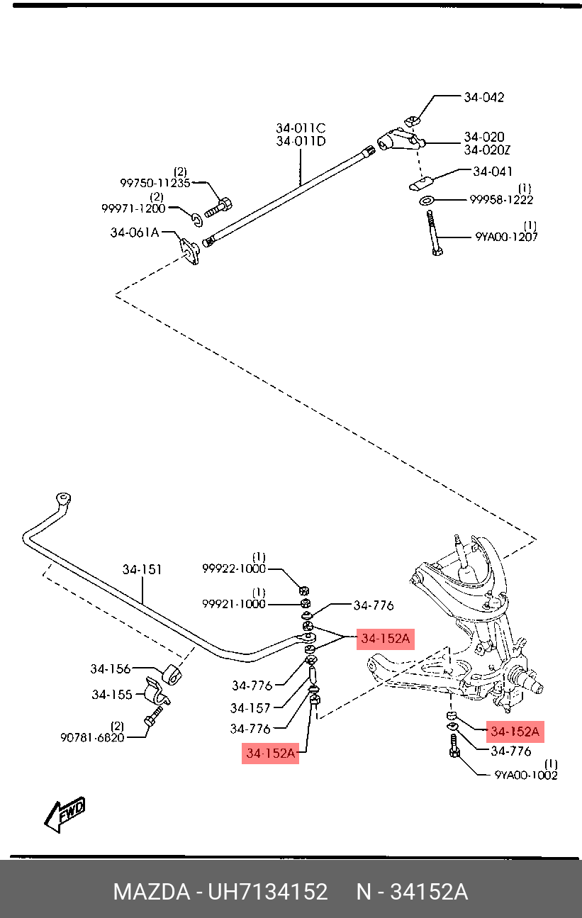 UH71-34-152 MAZDA Втулка тяги стабилизатора MAZDA NISSAN Almera (95-),Sunny (90-) переднего нижняя