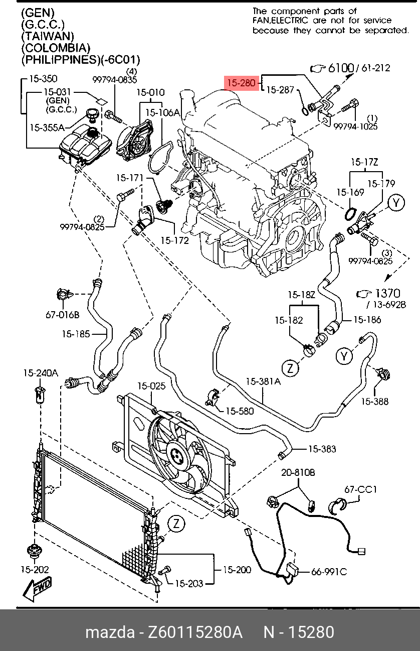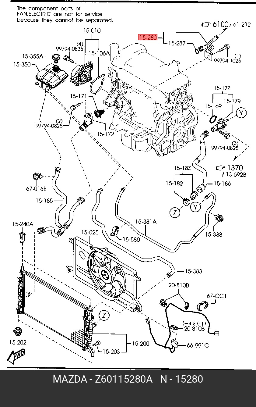 Z60115280A MAZDA Трубка MAZDA 3 (02-) системы охлаждения OE