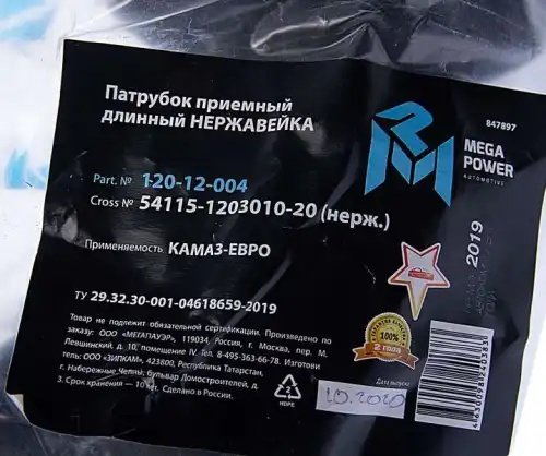 120-12-004 MEGA POWER Патрубок КАМАЗ-ЕВРО приемный длинный нержавейка MEGAPOWER