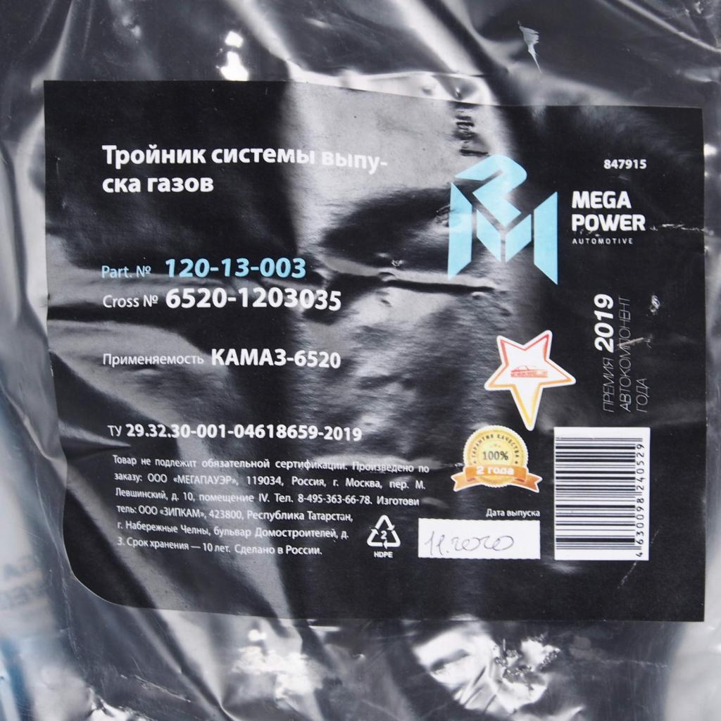 12013003 MEGA POWER Тройник КАМАЗ-6520 системы выпуска газов MEGAPOWER