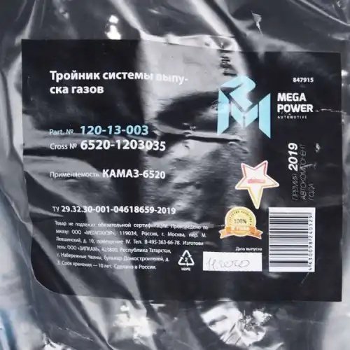 | Наименование | Тройник КАМАЗ-6520 системы выпуска газов MEGAPOWER |
