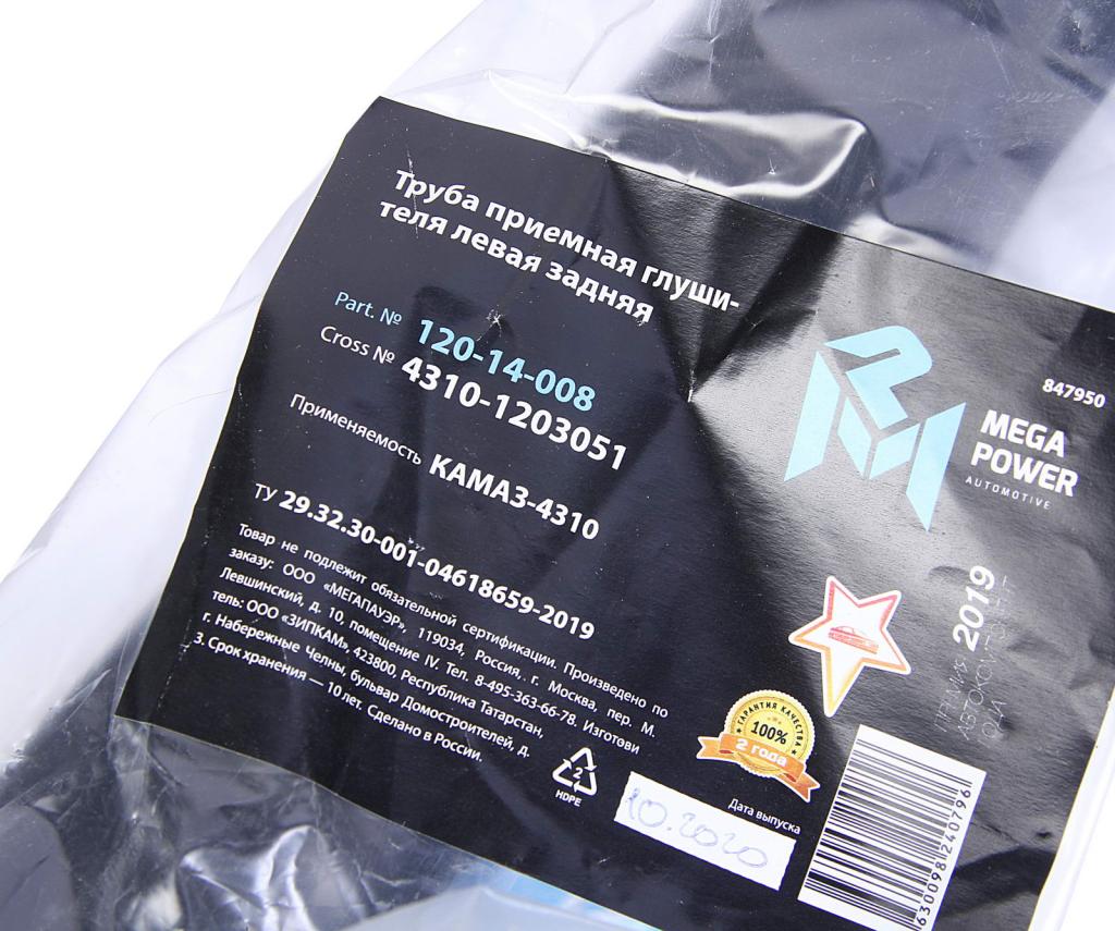 | Наименование | Труба приемная глушителя КАМАЗ-4310 левая задняя MEGAPOWER |