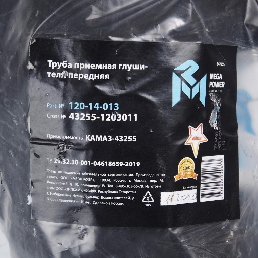 120-14-013 MEGA POWER Труба приемная глушителя КАМАЗ-43255 передняя MEGAPOWER