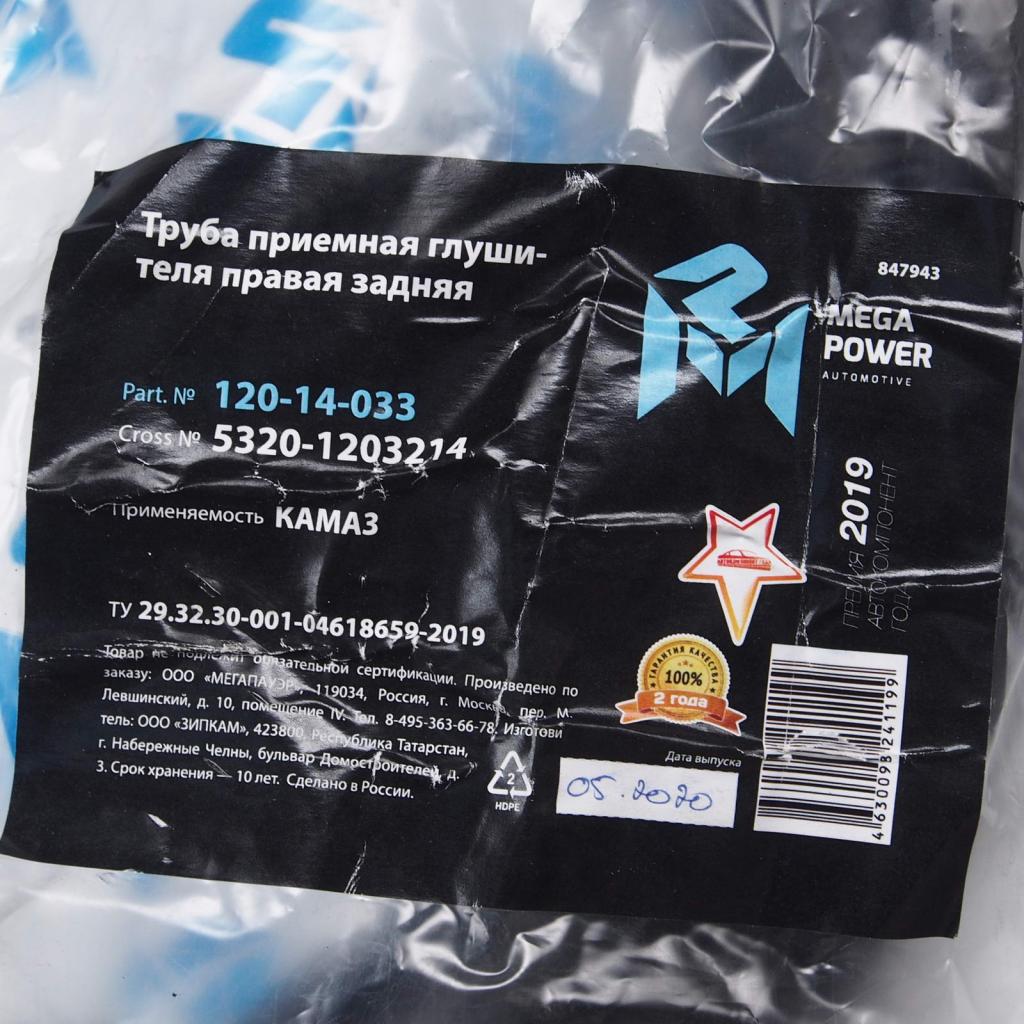 120-14-033 MEGA POWER Труба приемная глушителя КАМАЗ правая задняя MEGAPOWER