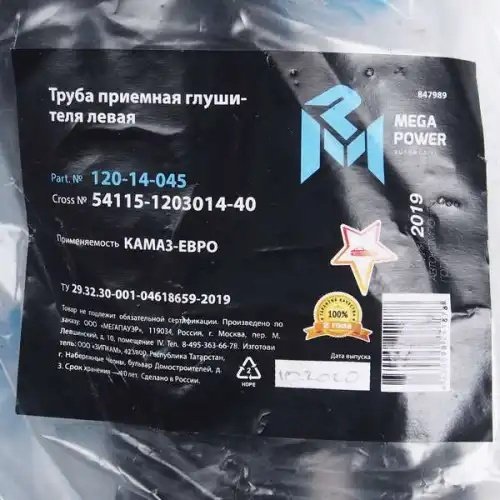 | Наименование | Труба приемная КАМАЗ ЛЕВАЯ 014 ЕВРО MEGAPOWER |