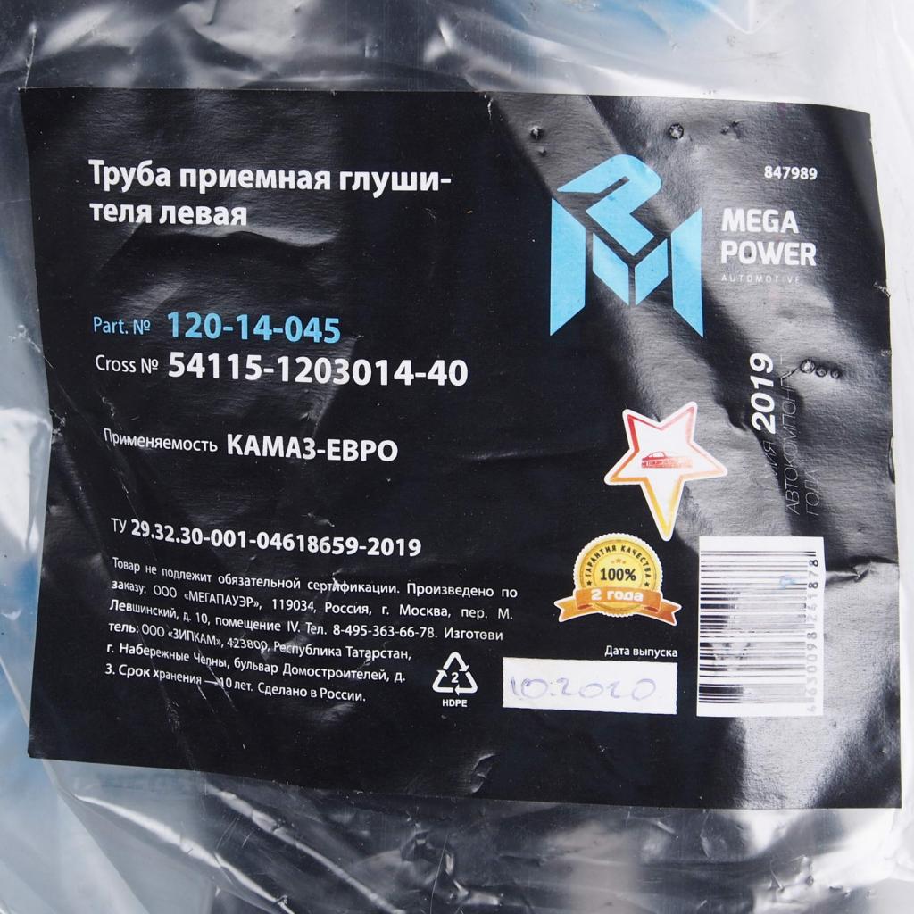 12014045 MEGA POWER Труба приемная КАМАЗ ЛЕВАЯ 014 ЕВРО MEGAPOWER