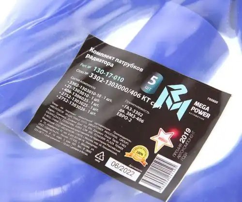 | Наименование | Патрубок ГАЗ-3302 дв.ЗМЗ-406 ЕВРО-2 радиатора комплект 5шт. силикон MEGAPOWER |