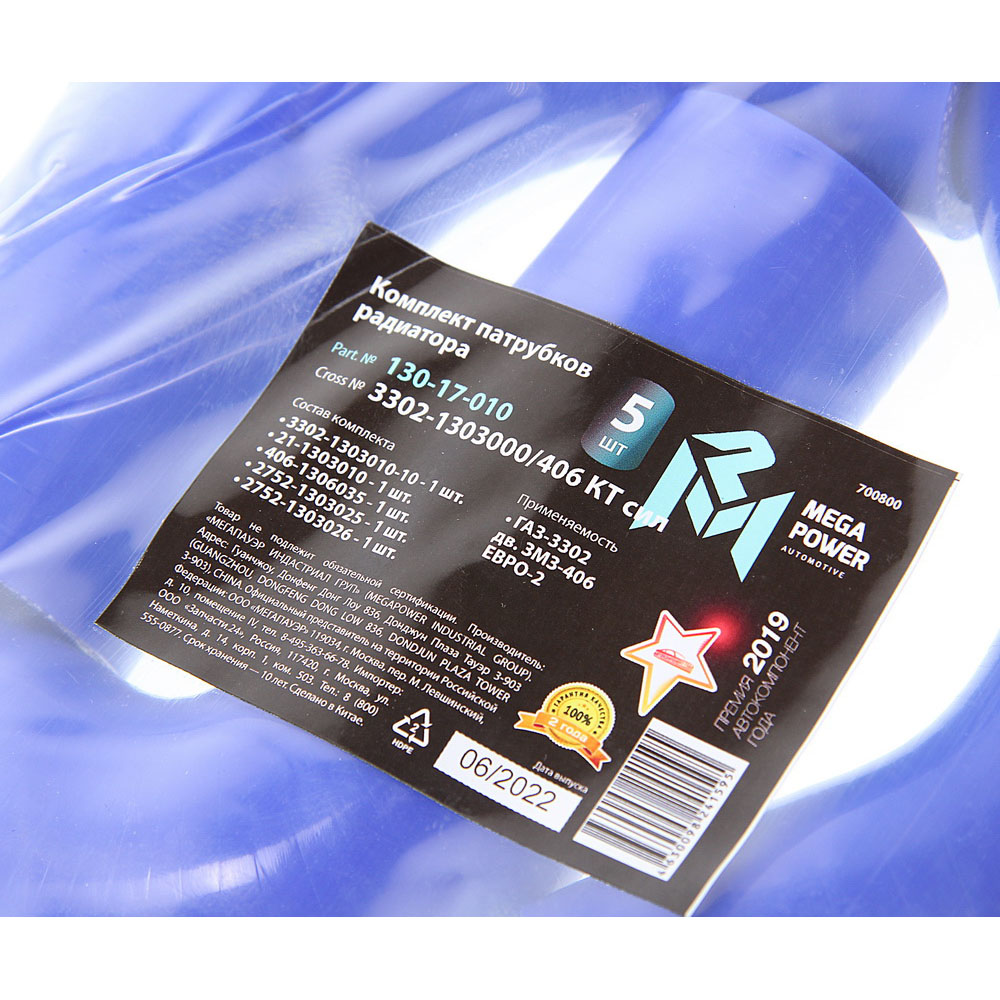 130-17-010 MEGA POWER Патрубок ГАЗ-3302 дв.ЗМЗ-406 ЕВРО-2 радиатора комплект 5шт. силикон MEGAPOWER