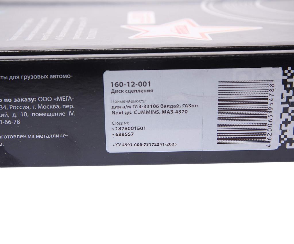 160-12-001 MEGA POWER Диск сцепления ГАЗ-33106 Валдай,ГАЗон Next дв.CUMMINS,МАЗ-4370 (аналог SACHS) ME