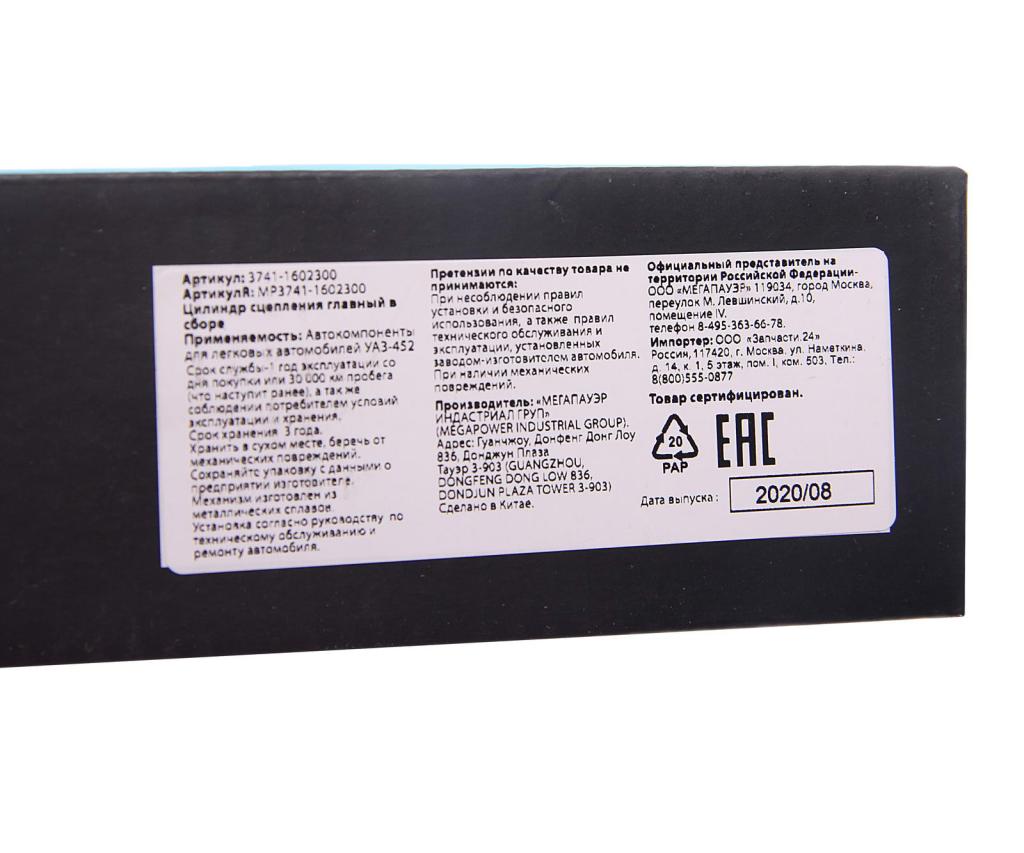 | Наименование | Цилиндр сцепления главный УАЗ-452 в сборе MEGAPOWER |