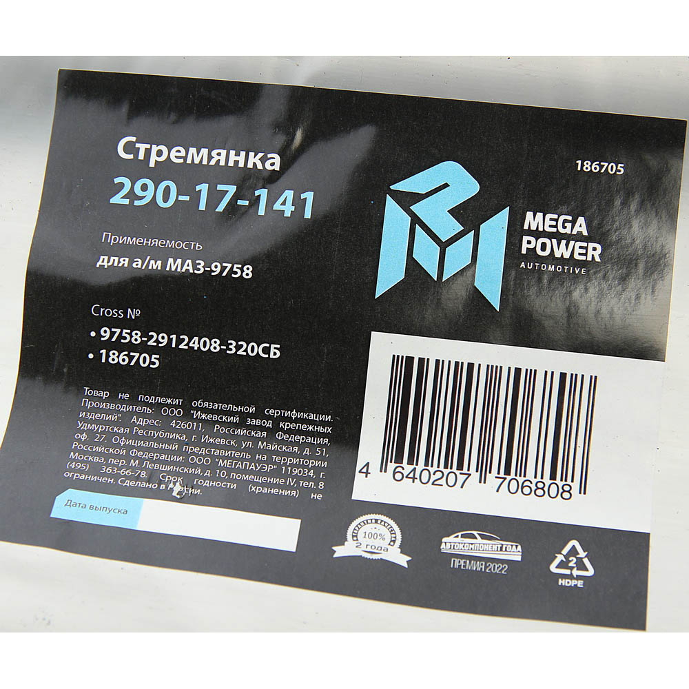 29017141 MEGA POWER Стремянка МАЗ-9758 полуприцепа L=320мм;М24х2мм усиленная в сборе MEGAPOWER