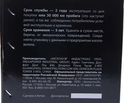 | Производитель | MEGAPOWER AUTOMOTIVE |