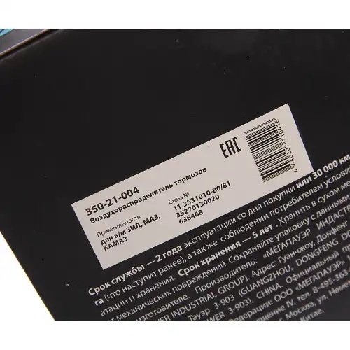 | Наименование | Воздухораспределитель ЗИЛ,МАЗ,КАМАЗ тормозов полуприцепа 1-но проводный MEGAPOWE |