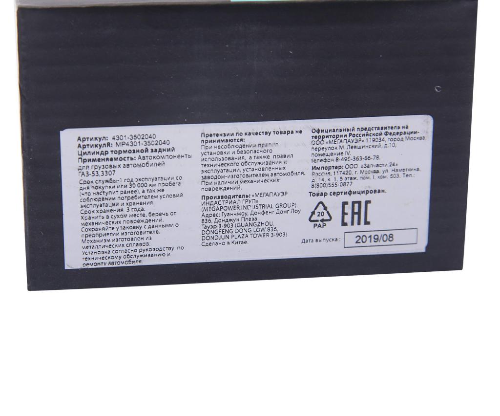 | Наименование | Цилиндр тормозной задний ГАЗ-53,3307 MEGAPOWER |