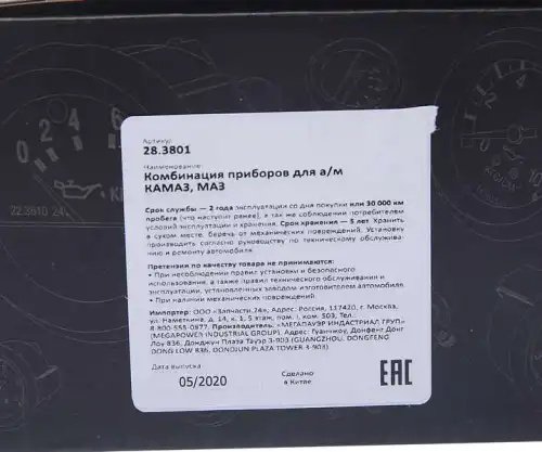 | Наименование | Комбинация приборов КАМАЗ,МАЗ MEGAPOWER |