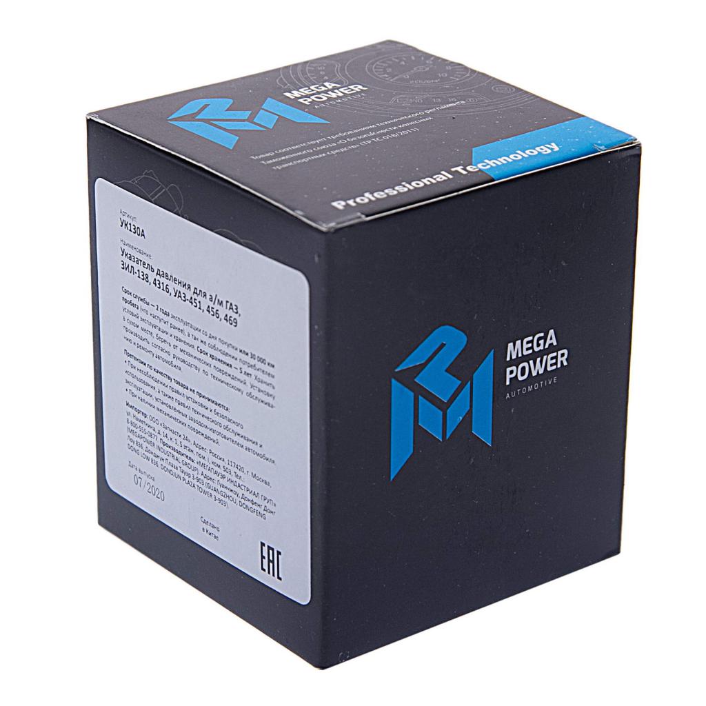 380-12-001 MEGA POWER Указатель давления ГАЗ,ЗИЛ-138,4316,УАЗ-451,456,469 MEGAPOWER