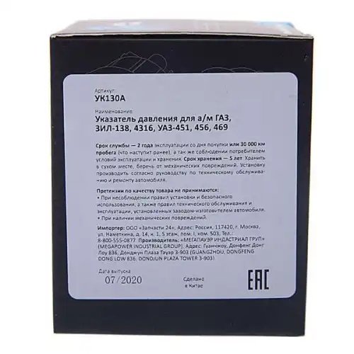 | Наименование | Указатель давления ГАЗ,ЗИЛ-138,4316,УАЗ-451,456,469 MEGAPOWER |