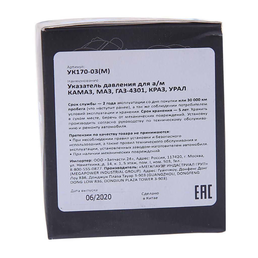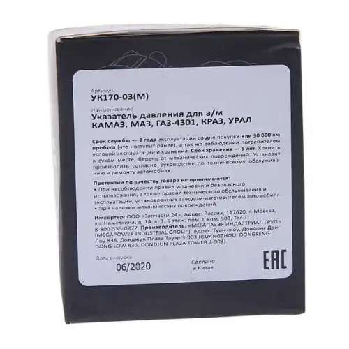| Наименование | Указатель давления КАМАЗ,МАЗ,ГАЗ-4301,КРАЗ,УРАЛ MEGAPOWER |