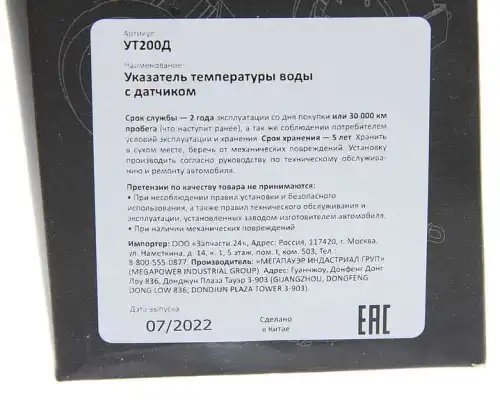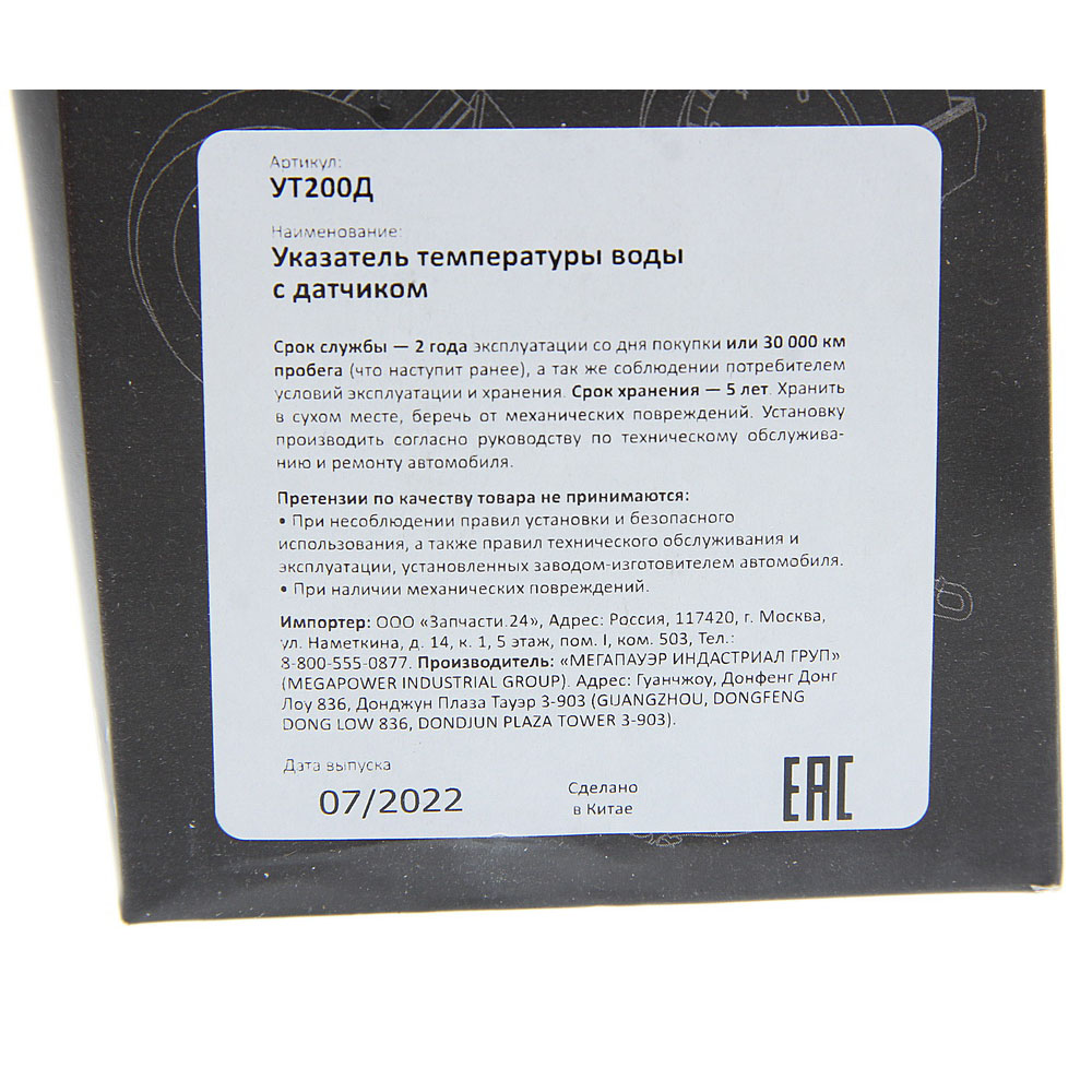 | Наименование | Указатель температуры воды с датчиком MEGAPOWER |