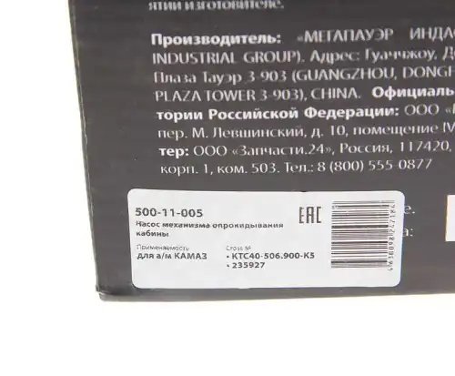 | Наименование | Насос механизма опрокидывания кабины КАМАЗ MEGAPOWER |