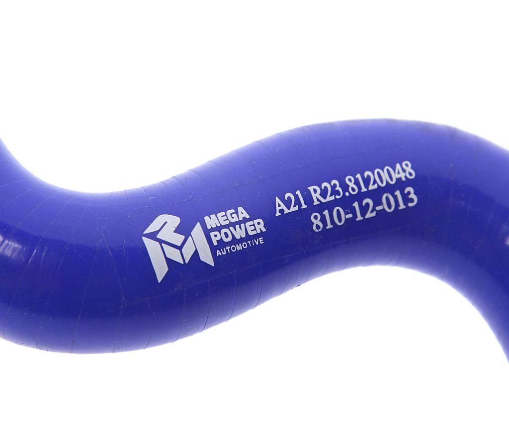 810-12-013 MEGA POWER Патрубок ГАЗель Next отопителя отводящий от радиатору к крану синий силикон (d=2