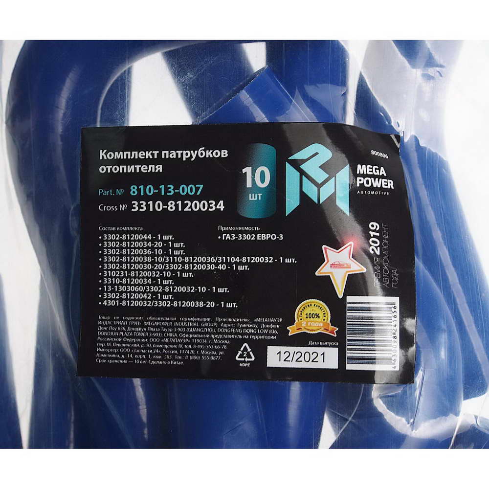 810-13-007 MEGA POWER Патрубок ГАЗ-3302 ЕВРО-3 отопителя комплект 10шт. синий силикон MEGAPOWER