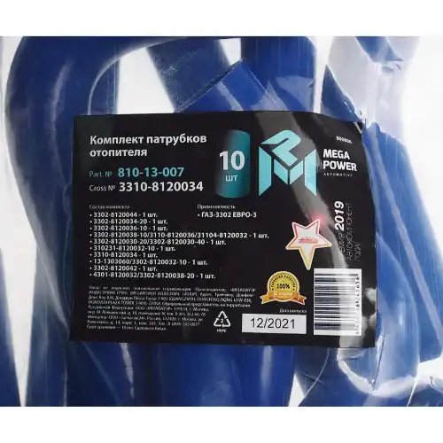 | Наименование | Патрубок ГАЗ-3302 ЕВРО-3 отопителя комплект 10шт. синий силикон MEGAPOWER |