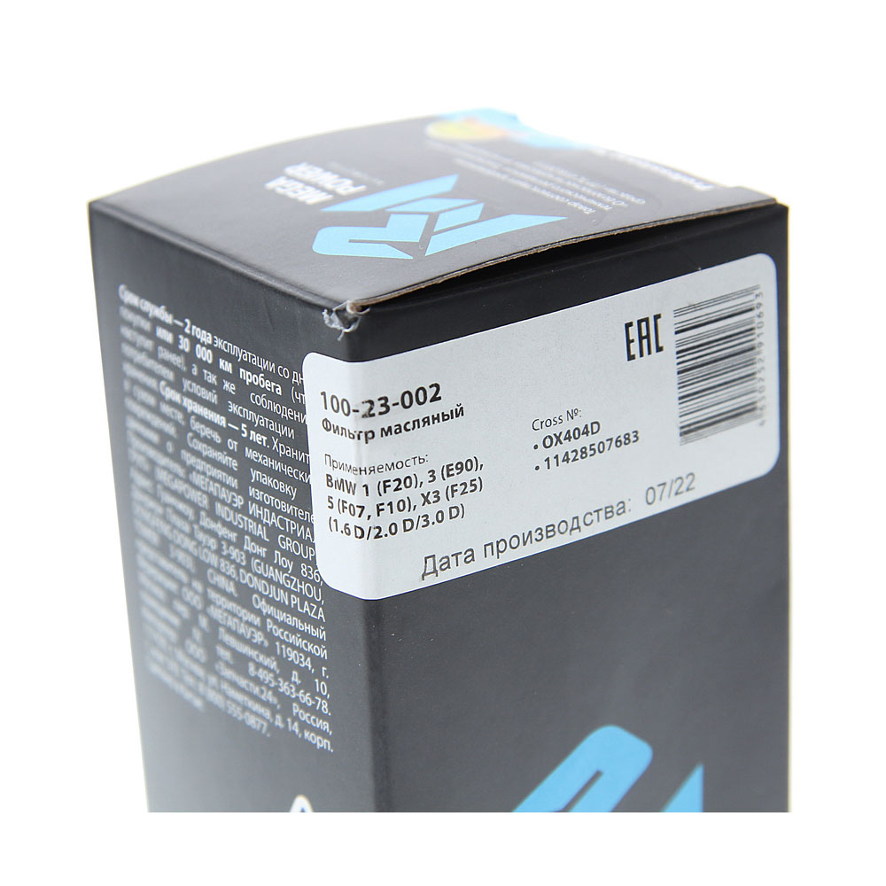 100-23-002 MEGA POWER Фильтр масляный BMW 1 (F20),3 (E90),5 (F07,F10),X3 (F25) (1.6 D/2.0 D/3.0 D) MEG