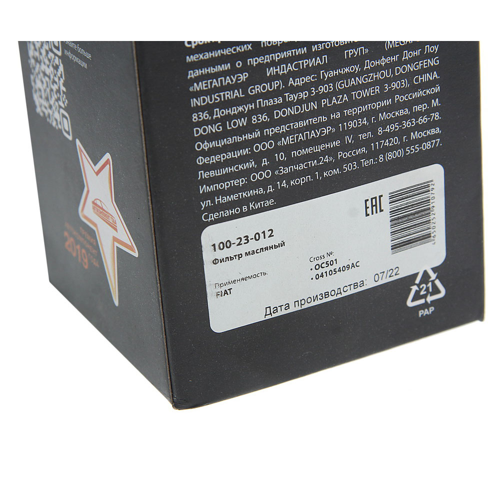 100-23-012 MEGA POWER Фильтр масляный FIAT MEGAPOWER