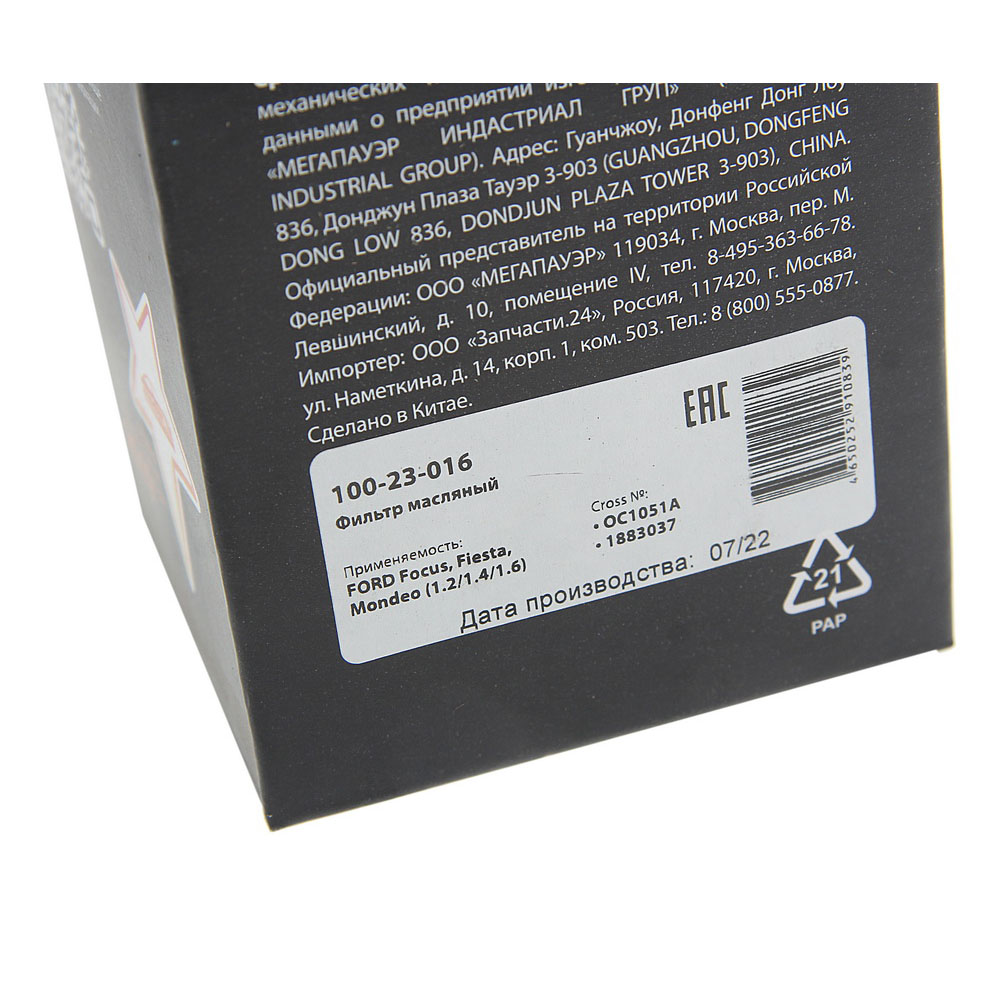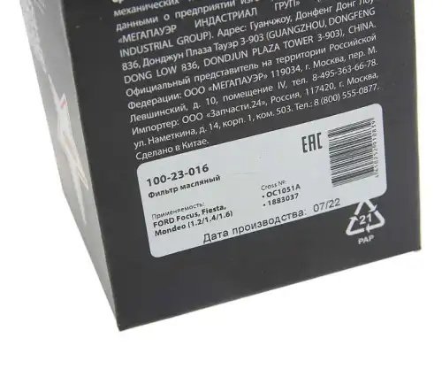 100-23-016 MEGA POWER Фильтр масляный FORD Focus,Fiesta,Mondeo (1.2/1.4/1.6) MEGAPOWER