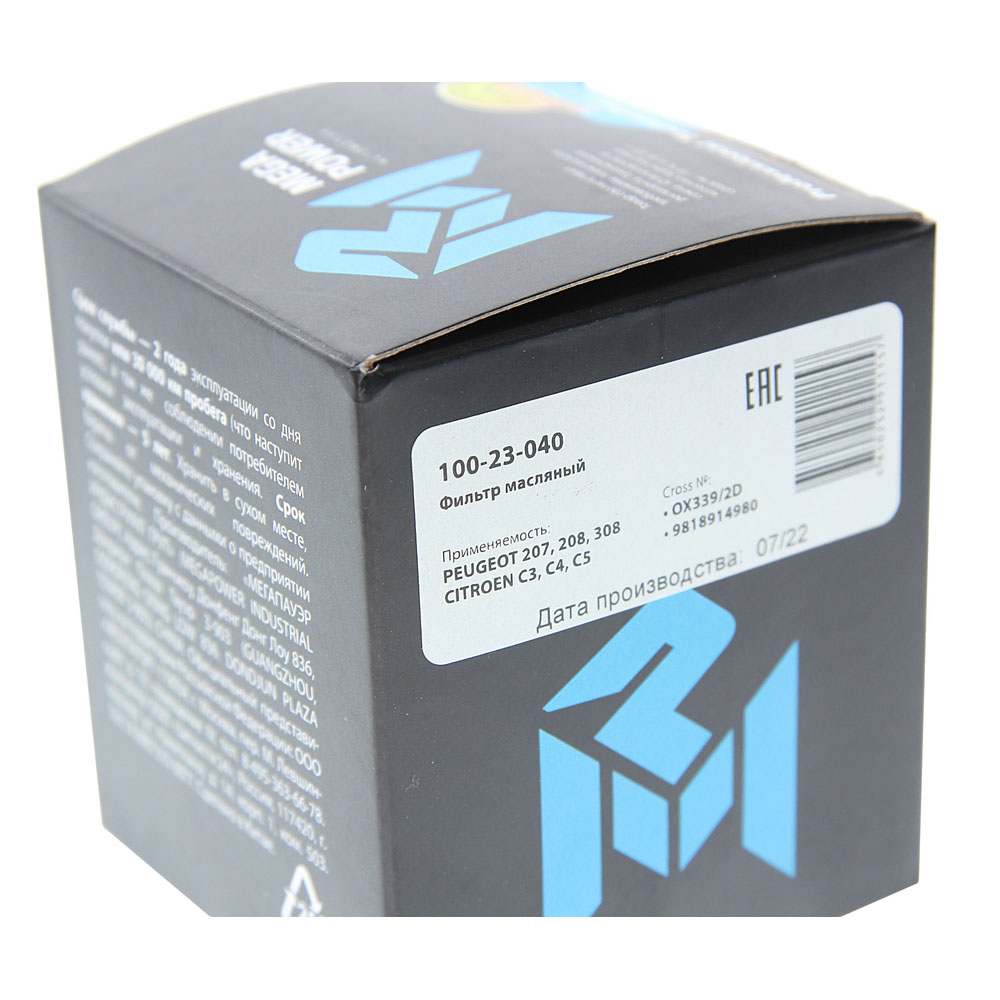 100-23-040 MEGA POWER Фильтр масляный PEUGEOT 207,208,308 CITROEN C3,C4,C5 MEGAPOWER