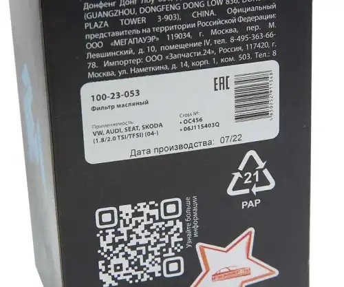| Наименование | Фильтр масляный VW AUDI SEAT SKODA (1.8/2.0 TSI/TFSI) (04-) MEGAPOWER |