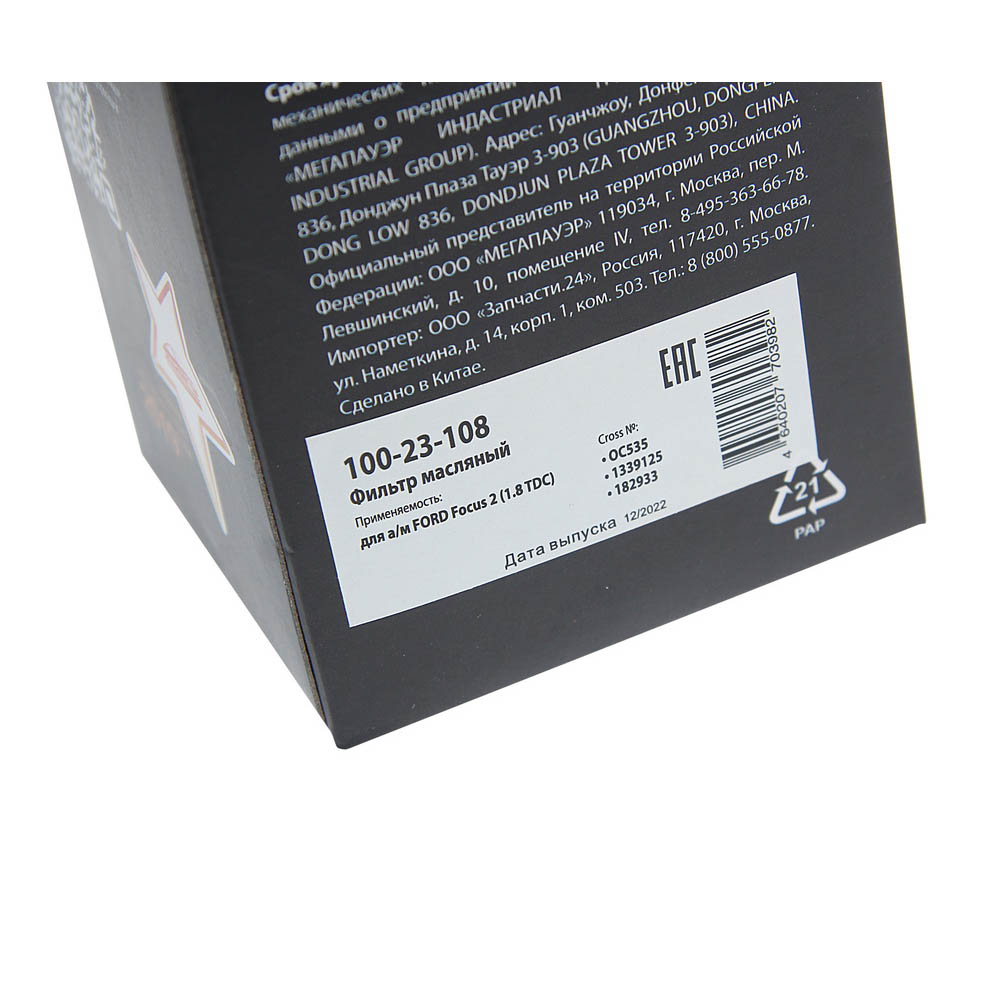 100-23-108 MEGA POWER Фильтр масляный FORD Focus 2 (1.8 TDC) MEGAPOWER